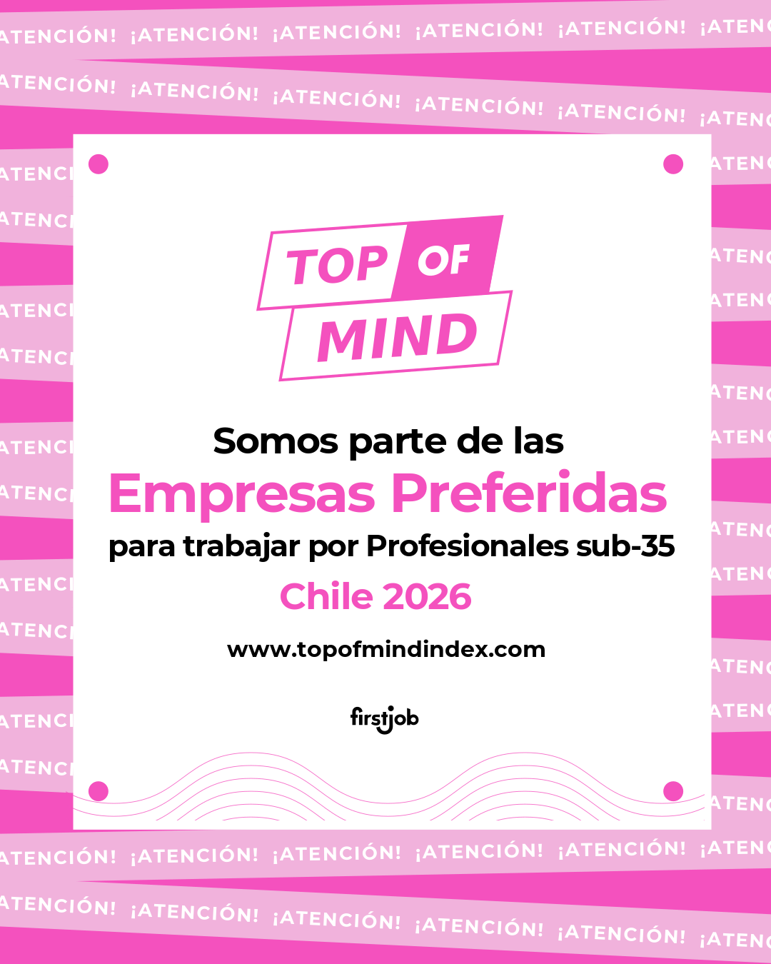 El Top of Mind Index (TOM) es un estudio regional de marca empleadora de FirstJob, dirigido a profesionales de 20 a 35 años. A través de preguntas abiertas, identifica las empresas que las personas mencionan como preferidas, construyendo rankings 100% cuantitativos en base a la frecuencia y orden de mención.